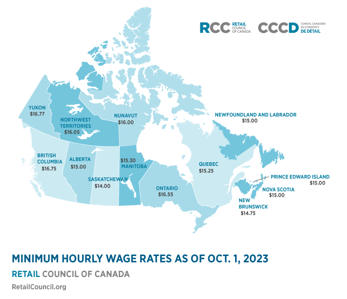 Manitoba is moving modestly, from $15.80 → $16.00/hr, continuing a post-pandemic series of smaller, steady increases. Manitoba’s retail and food service sectors rely heavily on hourly workers, so even a 20-cent raise can ripple through local economies.